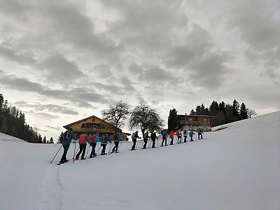 Spannend waren auch die vielen unterschiedlichen Sorten von Schnee. Von Pulverschnee bis Pappschnee und weichem Sulz war alles geboten. So konnten die Einsteiger am Sonntag einen sehr guten Eindruck bekommen, wie unterschiedlich Schneeschuhgehen sein kann.